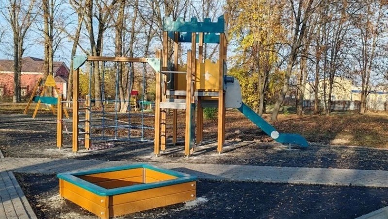 Строители продолжили работы по благоустройству парка «Молодёжный» в Валуйках Белгородской области