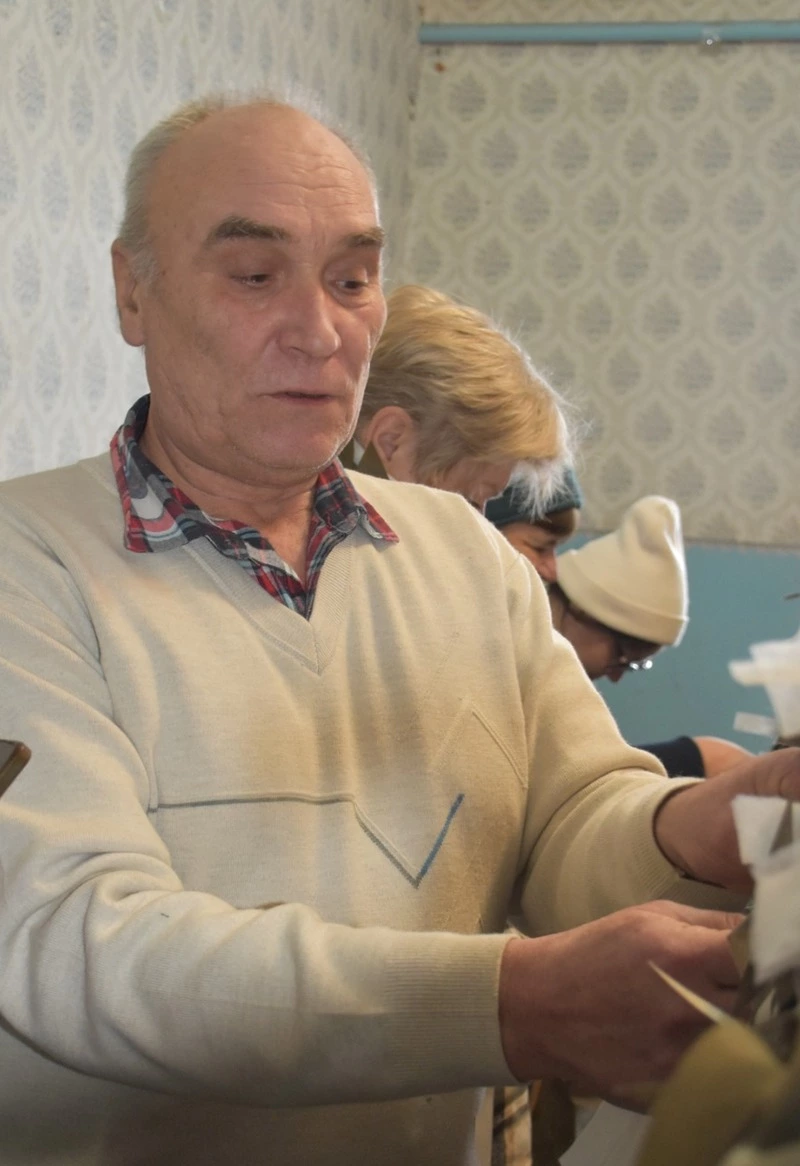 На том и порешили. Для начала селяне собрались у главы территориальной администрации на совет общественности. Кинули клич, обсудили ситуацию и единодушно сошлись во мнении, что группе быть! Добровольцев оказалось более 70 человек. Половина из них тут же подхватила идею и изъявила желание освоить плетение маскировочных сетей. Нашли помещение, с материалом для первой партии изделий помогла шелаевская группа Оксаны Аридовой, а Михаил Иржевич собственноручно изготовил станок.