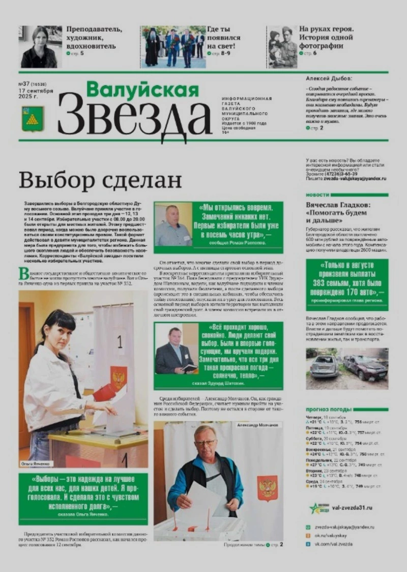 Газета «Валуйская звезда» №37 от 17 сентября 2025 года