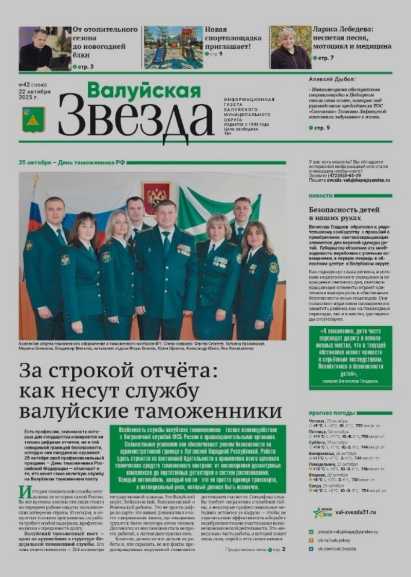 Газета «Валуйская звезда» №42 от 22 октября 2025 года