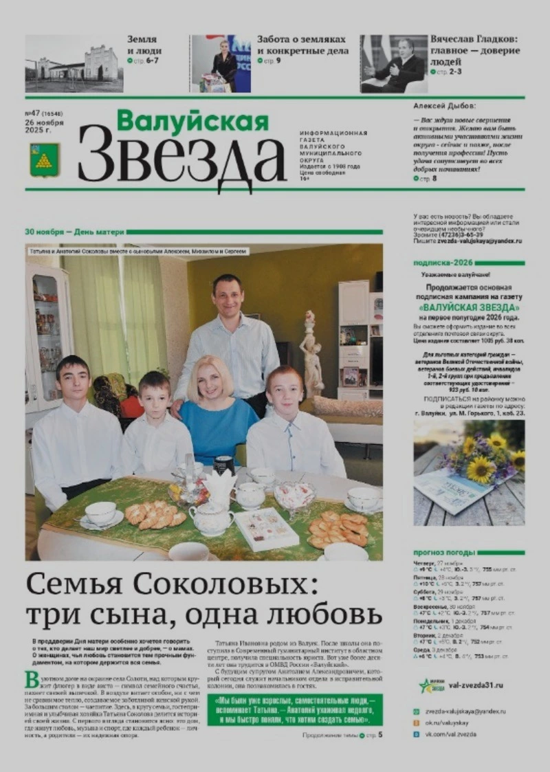 Газета «Валуйская звезда» №47 от 26 ноября 2025 года