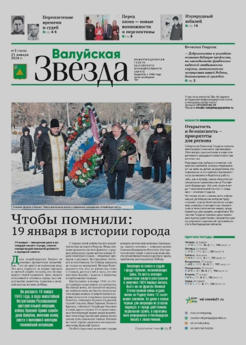 Газета «Валуйская звезда» №3 от 21 января 2026 года