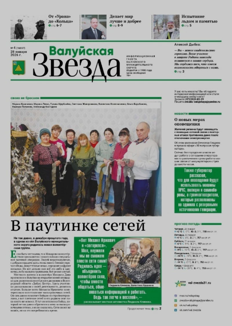 Газета «Валуйская звезда» №4 от 28 января 2026 года