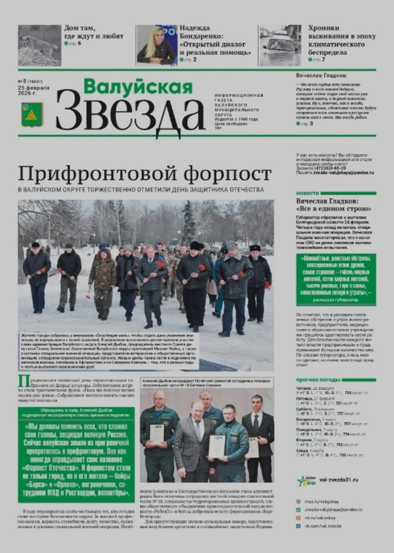 Газета «Валуйская звезда» №8 от 25 февраля 2026 года