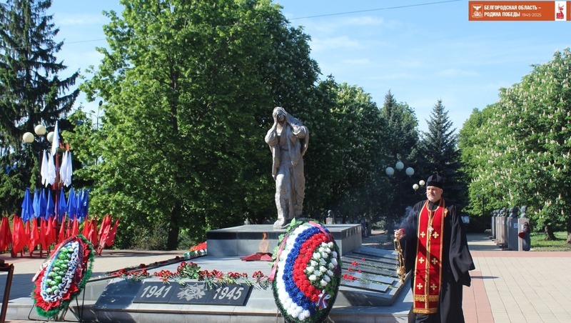 Присутствующие возложили цветы к мемориалу «Скорбящая мать», к бюстам Героев Советского Союза и к памятнику детям войны. Благочинный Валуйского округа Михаил Чайка совершил заупокойную литию по воинам, которых уже нет с ними.