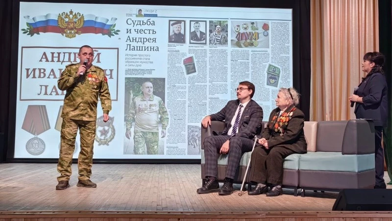 Тёплую и доверительную атмосферу создала ветеран Раиса Павловна Кравченко. Её воспоминания стали живым свидетельством мужества и стойкости нашего народа. Своим боевым путём поделился и ветеран боевых действий, участник Чеченской кампании и СВО Андрей Лашин. Его рассказ, наполненный реалиями службы и личным опытом, вызвал неподдельный интерес у молодёжи.