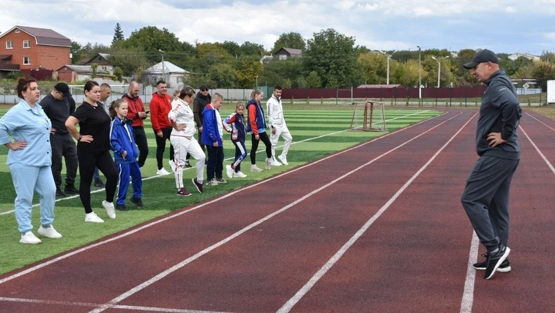 Акция началась с приветствия заместителя главы администрации Валуйского муниципального округа по социальным вопросам Ирины Дубровой. Герой-участник СВО Олег Сазонов провёл зарядку для присутствующих.